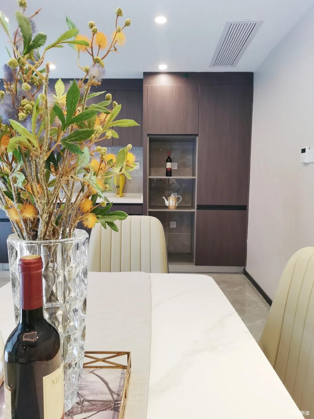 開放式的餐廚設(shè)計(jì)讓餐邊柜和櫥柜的居家動(dòng)線更為流暢,成了最便利的收納場(chǎng)所,生活小資而又美好。