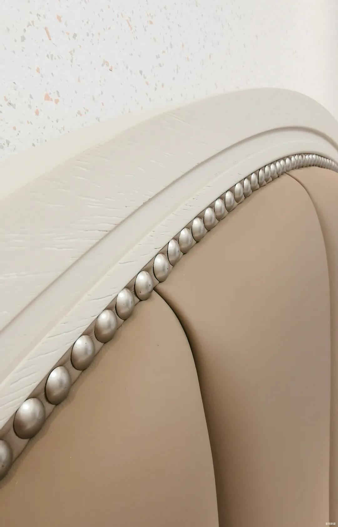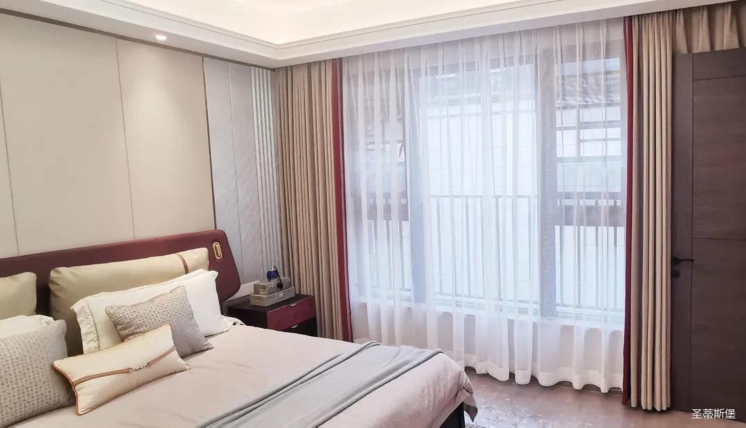 三樓的主人房設(shè)計(jì)風(fēng)格更偏向簡(jiǎn)約,浪漫的酒紅色床屏運(yùn)用了曲面造型,融合了極簡(jiǎn)主義美學(xué)和輕奢元素,小型夜間感應(yīng)燈設(shè)計(jì)讓每一處細(xì)節(jié)都充滿著時(shí)尚優(yōu)雅的氣息。夜間倚靠在厚實(shí)的軟包上,時(shí)光好像在不知不覺中慢了下來,讓我們能品味和咀嚼生活的氛圍。