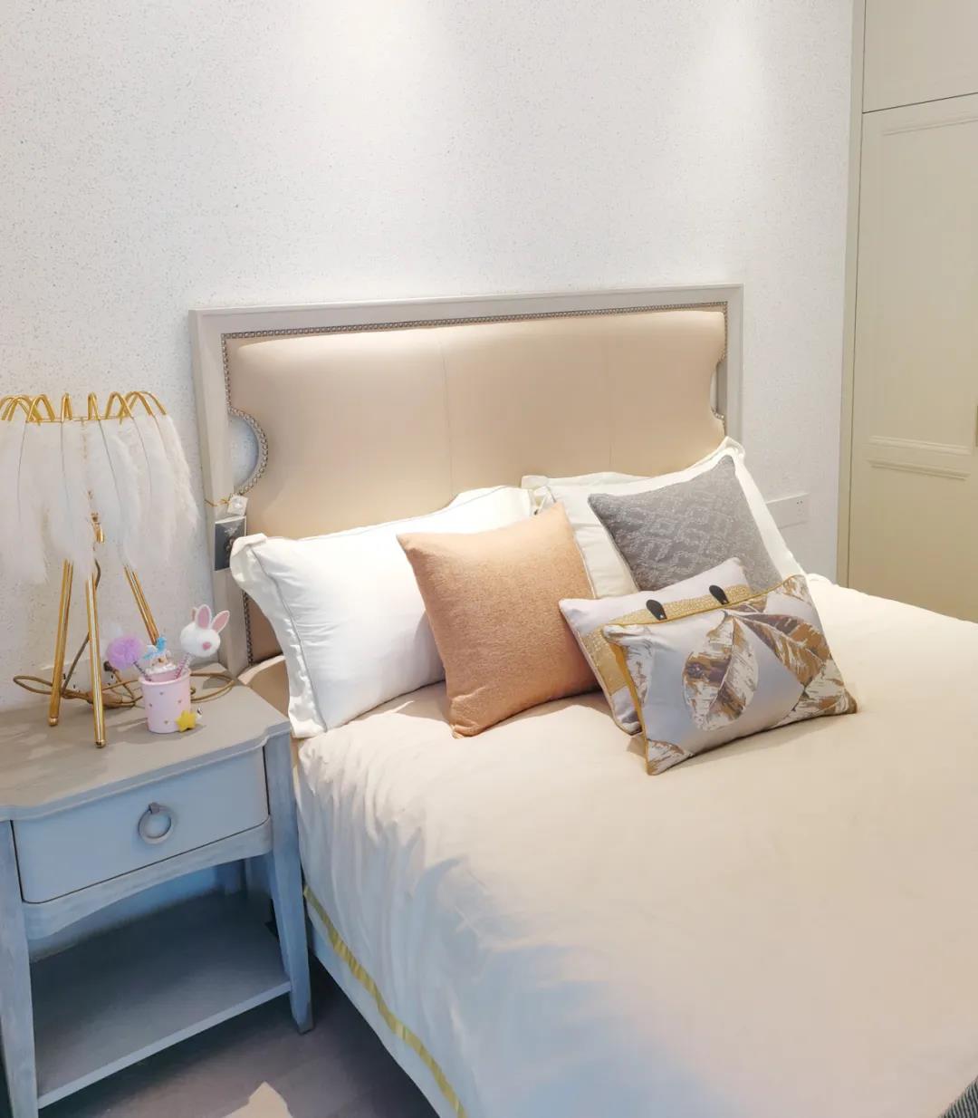 少女粉軟包床屏搭配仙氣十足的羽翼臺(tái)燈,讓空間顯得尤為夢(mèng)幻。功能與顏值兼具的定制衣柜,與溫柔的空間相得益彰,簡(jiǎn)單優(yōu)雅的同時(shí)也不失童趣。